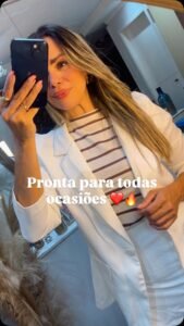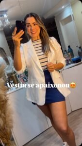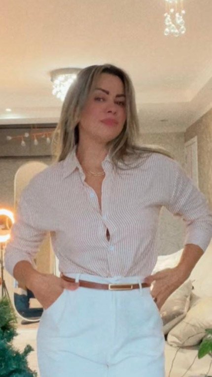 Camisa Listrada Azul Feminina Elegante