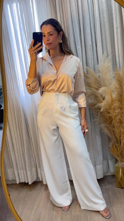 Camisa de Cetim Bege Feminina