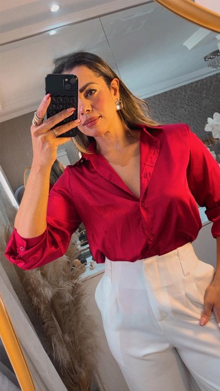 Camisa de Cetim Vermelha Feminina